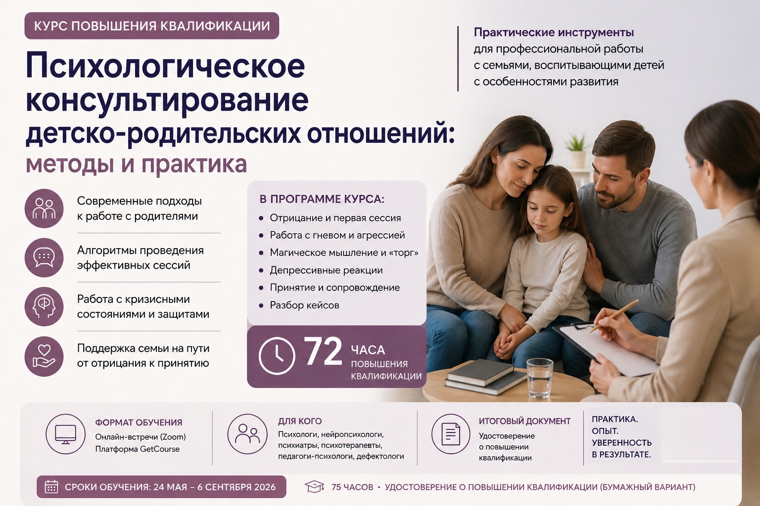 Этот курс - про точную, бережную и профессиональную работу с родительскими реакциями: от отрицания до принятия.